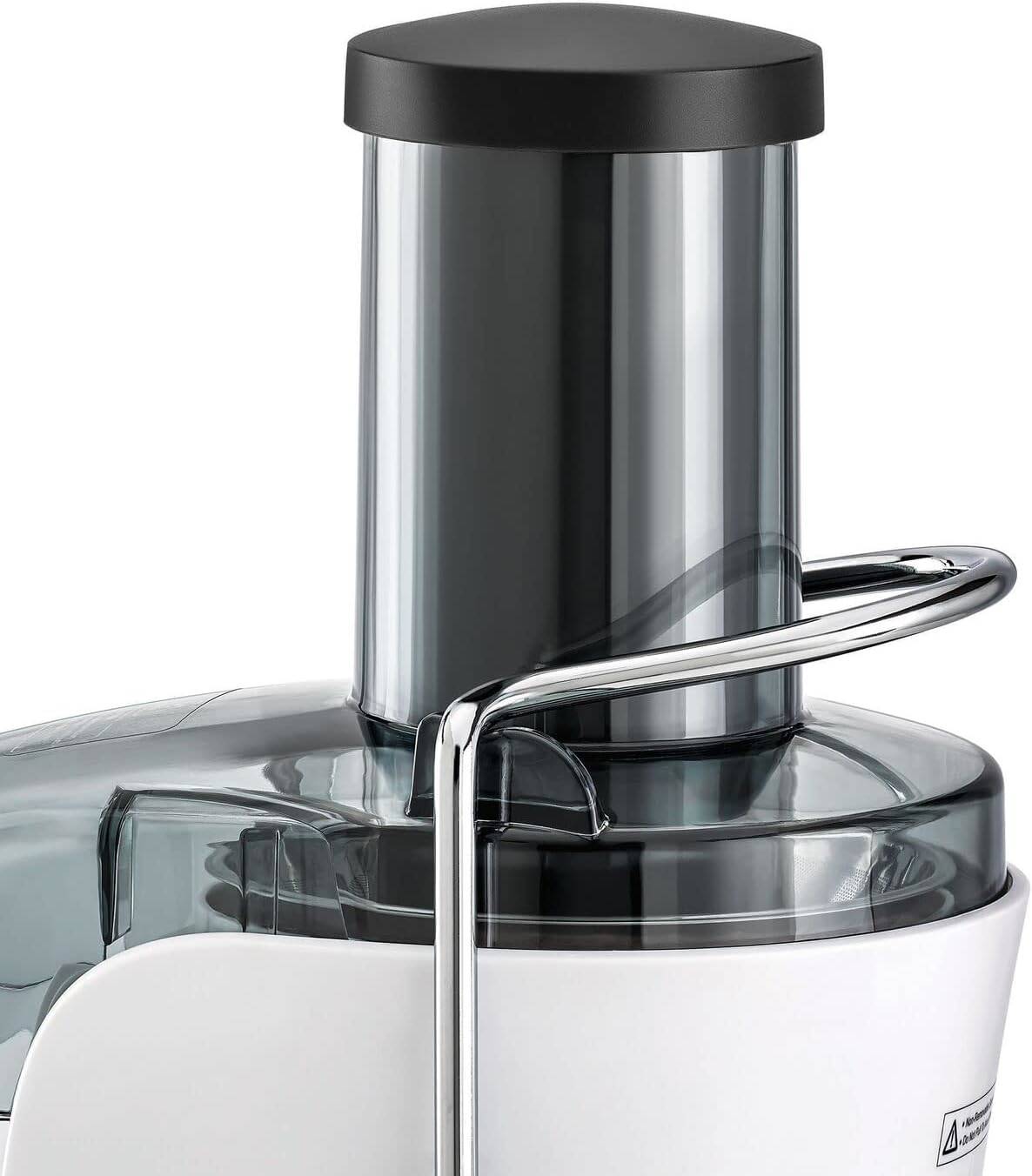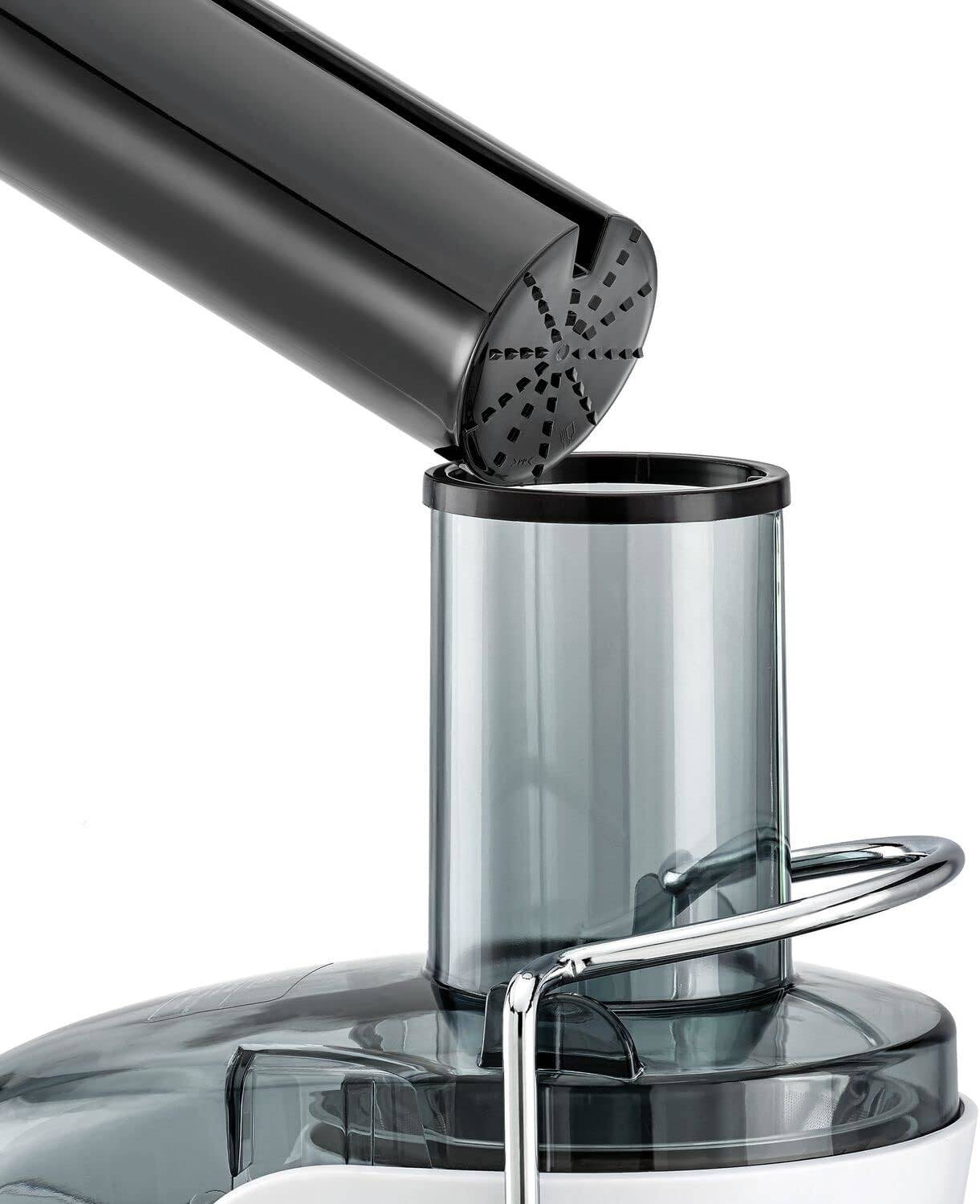 فتحة تغذية XL تحتوي عصارة الفاكهة على فتحة تغذية XL مقاس 75 مم، مما يجعل من السهل عصر الفواكه والخضروات كاملة دون الحاجة إلى التقطيع المسبق؛ توفر فتحة التغذية XL هذه الوقت والجهد، مما يجعل العصير خاليًا من المتاعب تمامًا؛ تأتي عصارة الفاكهة أيضًا مع جامع عصير سعة 500 مل، لذلك يظل تقديم العصير وحمله مريحًا