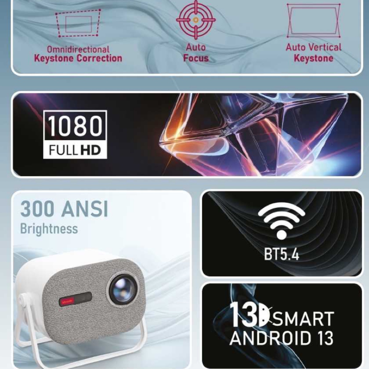 جرب الترفيه بجودة السينما مع جهاز عرض Moxedo Optivus Smart Android. يوفر جهاز العرض متعدد الاستخدامات هذا دقة 1080P Full HD مذهلة مع سطوع مذهل 300 ANSI lumens، وهو مثالي لكل من المسرح المنزلي والعروض التقديمية الاحترافية. تسمح ميزة التكبير المبتكرة بأحجام شاشة مرنة من 33 بوصة إلى 180 بوصة، مع مسافات رمي تتراوح بين 50-150 سم. يعمل جهاز العرض الذكي هذا على نظام التشغيل Android OS 13.0، ويوفر إمكانات بث سلسة من خلال اتصال Wi-Fi 5G وBluetooth 5.4. يضمن التركيز البؤري التلقائي المتقدم وتصحيح حجر الزاوية متعدد الاتجاهات صورا واضحة وضوح الشمس ومحاذاة تماما في كل مرة. يجمع جهاز العرض هذا بين الأداء القوي والتصميم الموفر للمساحة. سواء كنت تستضيف ليالي الأفلام أو جلسات الألعاب أو العروض التقديمية للأعمال، يوفر جهاز العرض هذا جودة بصرية استثنائية ووظائف ذكية في حزمة واحدة متطورة