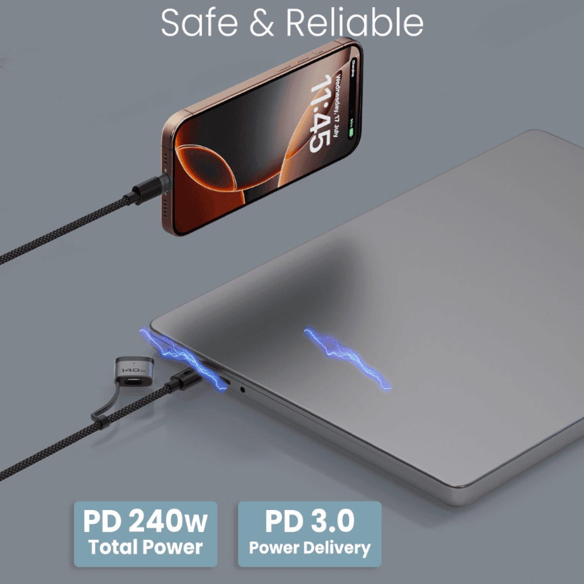 الحماية المتعددة: نعطي الأولوية لسلامة أجهزتك. يتضمن كابل الشحن 2 في 1 الخاص بنا حماية مدمجة ضد الجهد الزائد والتيار الزائد والدوائر القصيرة، مما يمنحك راحة البال أثناء عملية الشحن. في بعض الحالات، يعد التأخير القصير من 15 إلى 20 ثانية علامة مطمئنة على أن آلية السلامة المغناطيسية لدينا تحمي الكمبيوتر المحمول بنشاط.