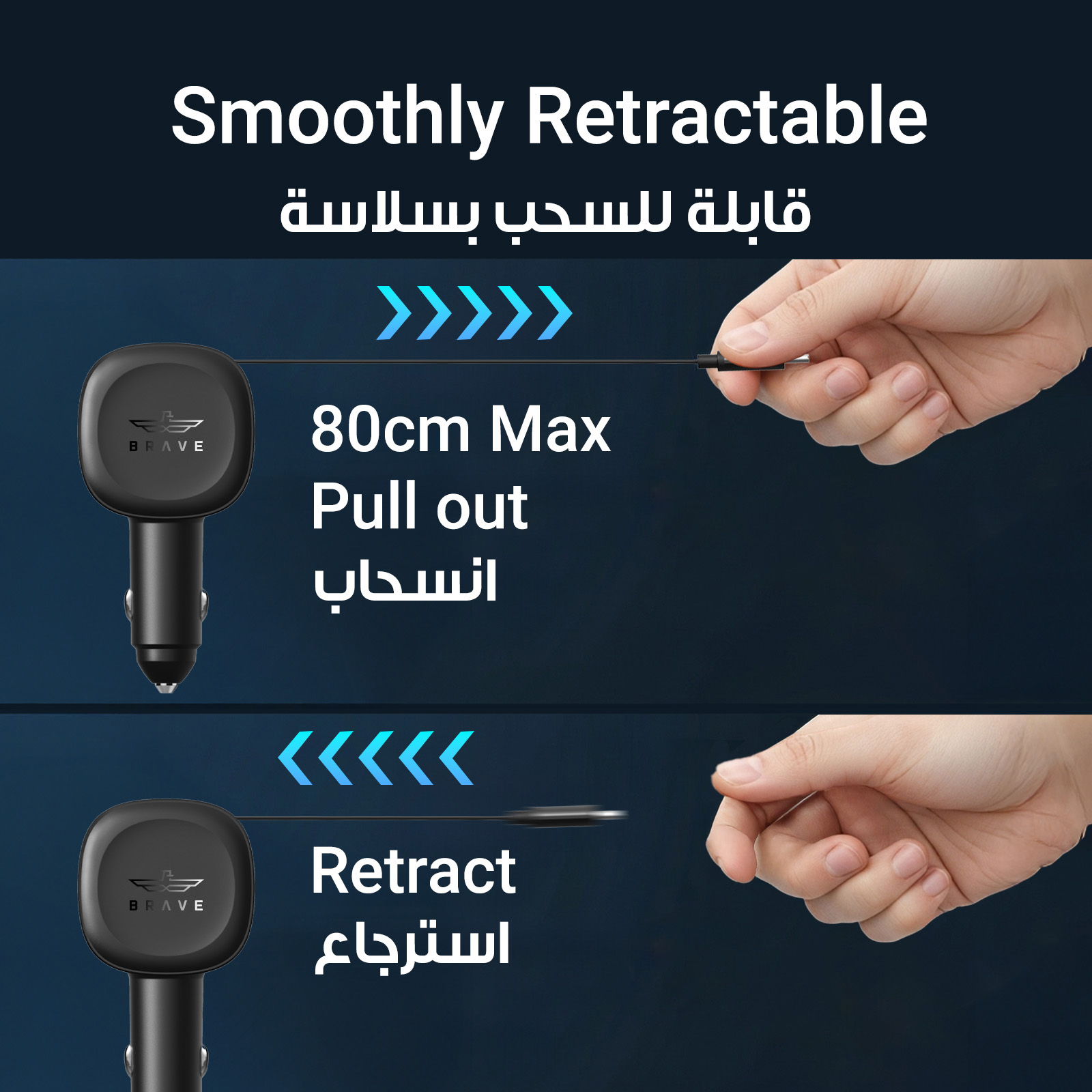كابل قابل للسحب: كابل مدمج من النوع C مقاس 80 سم للراحة.