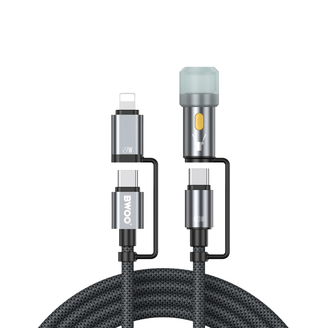 كابل شحن متعدد الوظائف USB-C، 4 في 1، مزود بمنفذ لايتنينج وشاحن سريع (60 واط/27 واط)