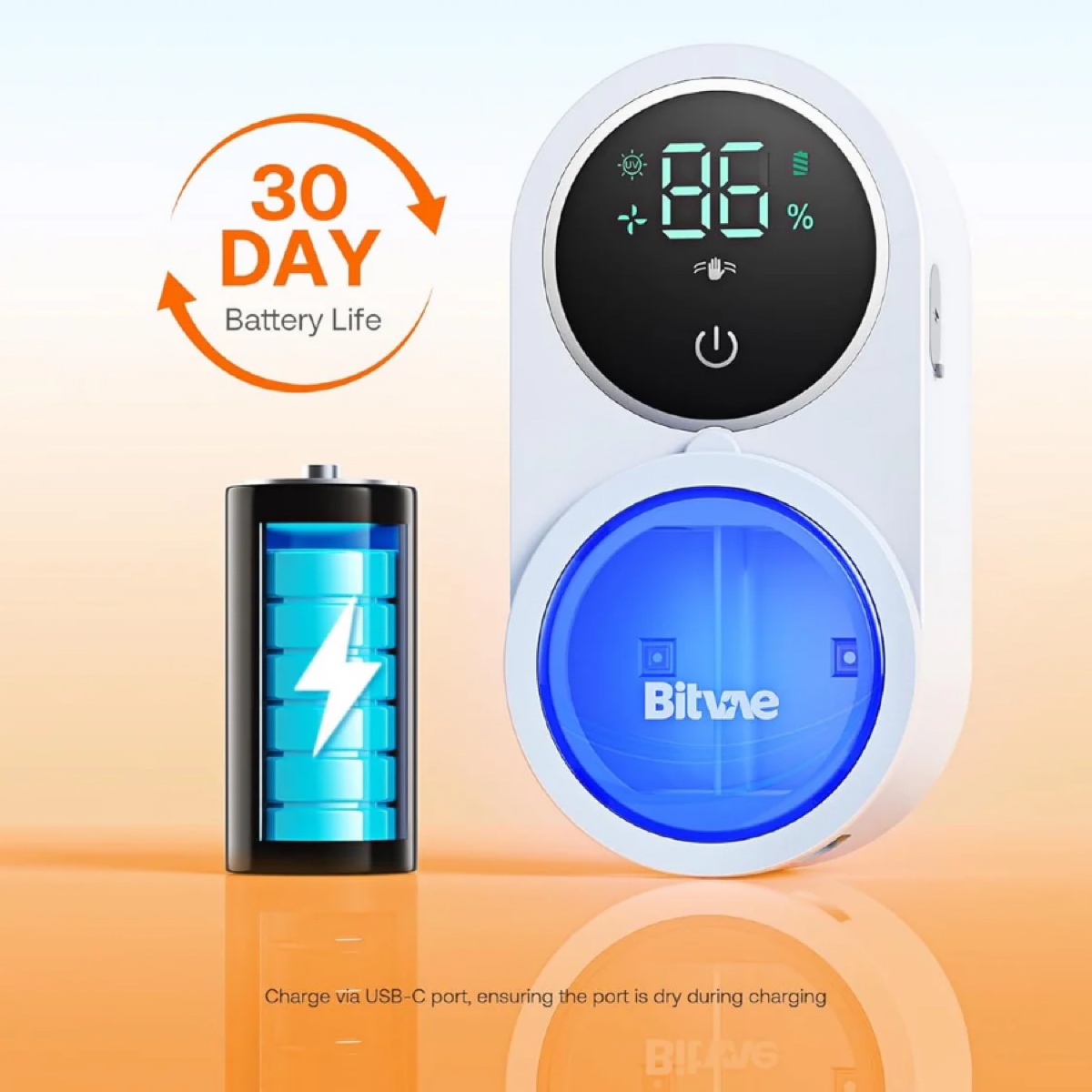 يعقم فرشاة الأسنان بشكل فعال باستخدام ضوء الأشعة فوق البنفسجية مع ضمان جفافها تماما بعد كل استخدام، مما يوفر حلا صحيا لروتينك اليومي.