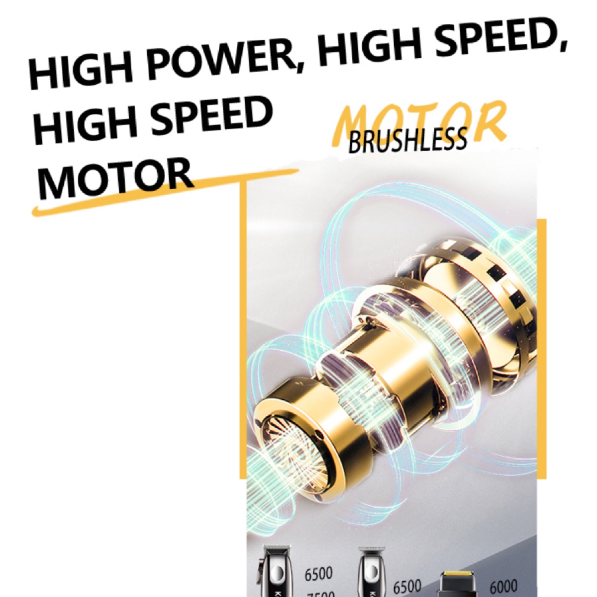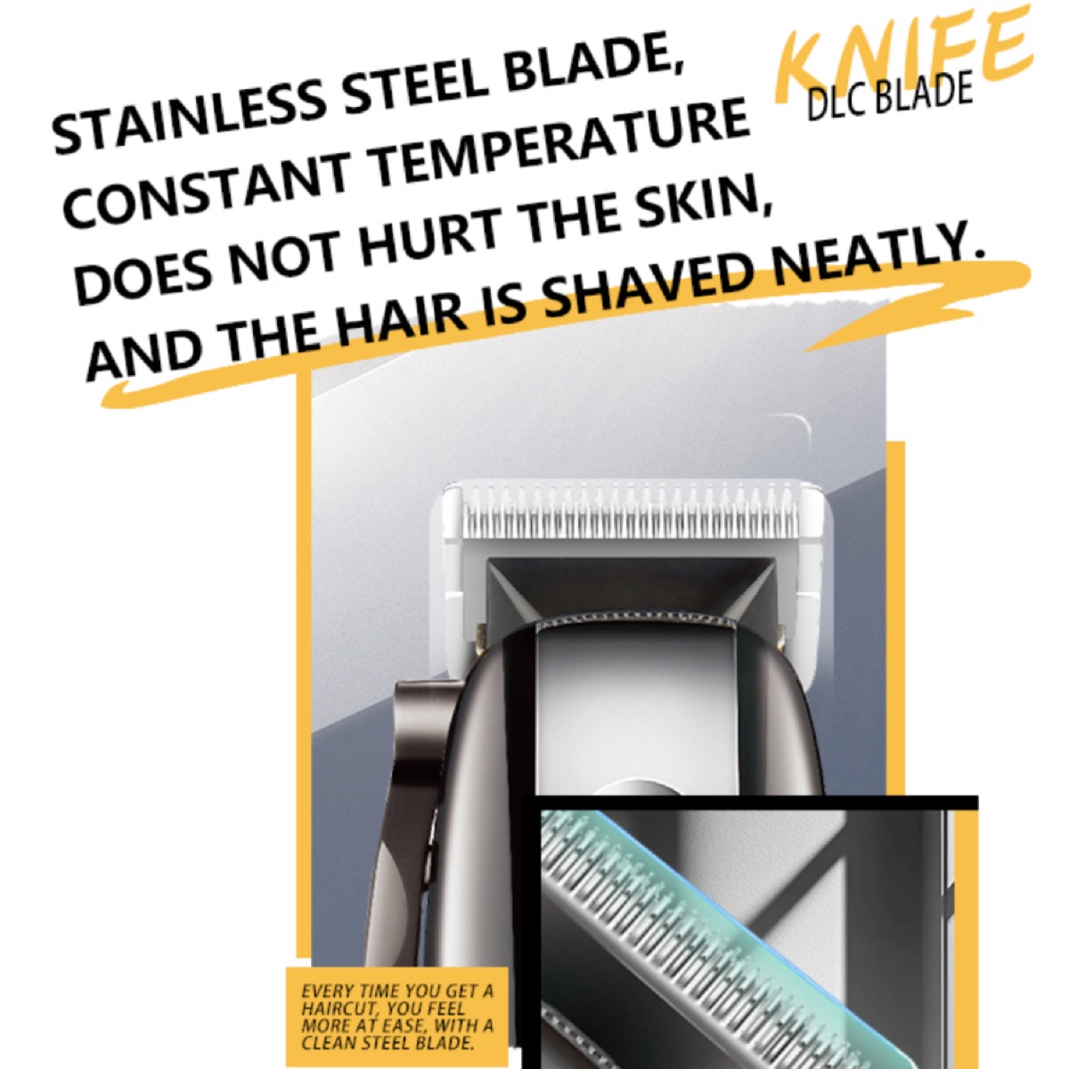 1. ماكينة حلاقة شعر رئيسية – لقص الشعر بدقّة عالية وسرعة قوية، مزودة بمحرك قوي وشاشة رقمية تُظهر نسبة البطارية.