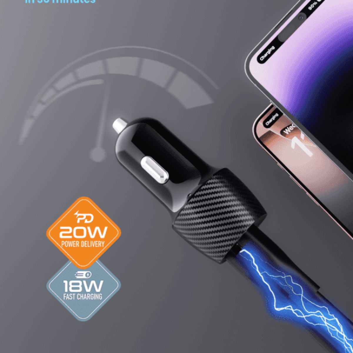 USB-C PD 38W، لجهاز iPhone 15 Pro/Samsung S24: شاحن سيارة Moxedo Lite يدعم منفذ USB-C 38 واط كحد أقصى، ويشحن سلسلة iPhone 15/14/13 من 0٪ إلى 60٪ في 30 دقيقة.