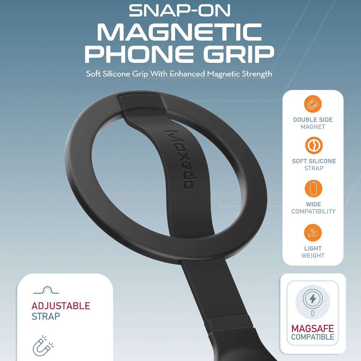 · مغناطيس قوي للغاية: صنعت قبضة الهاتف المغناطيسية Moxedo هذه بمغناطيسات نيوديميوم N52 تتميز بقوة إمساك، مما يضمن التوافق السلس مع الأجهزة التي تدعم MagSafe وحافظات الهاتف المغناطيسية لمنع السقوط بشكل موثوق.